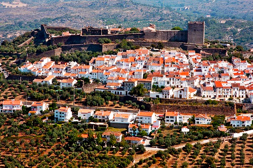 Praça fortificada da Idade Média, foi conquistada aos Mouros por D. Afonso Henriques em 1166. A vila, no interior do castelo, encontra-se particularmente preservada o que levou à sua candidatura a Património Mundial da Unesco. Para além das soberbas vistas da planície alentejana e terras de Espanha (presentes na imagem abaixo), recomenda-se um passeio pelas suas ruas bem como um desvio à cidade romana de Ammaia, na freguesia de S. Salvador da Aramenha.